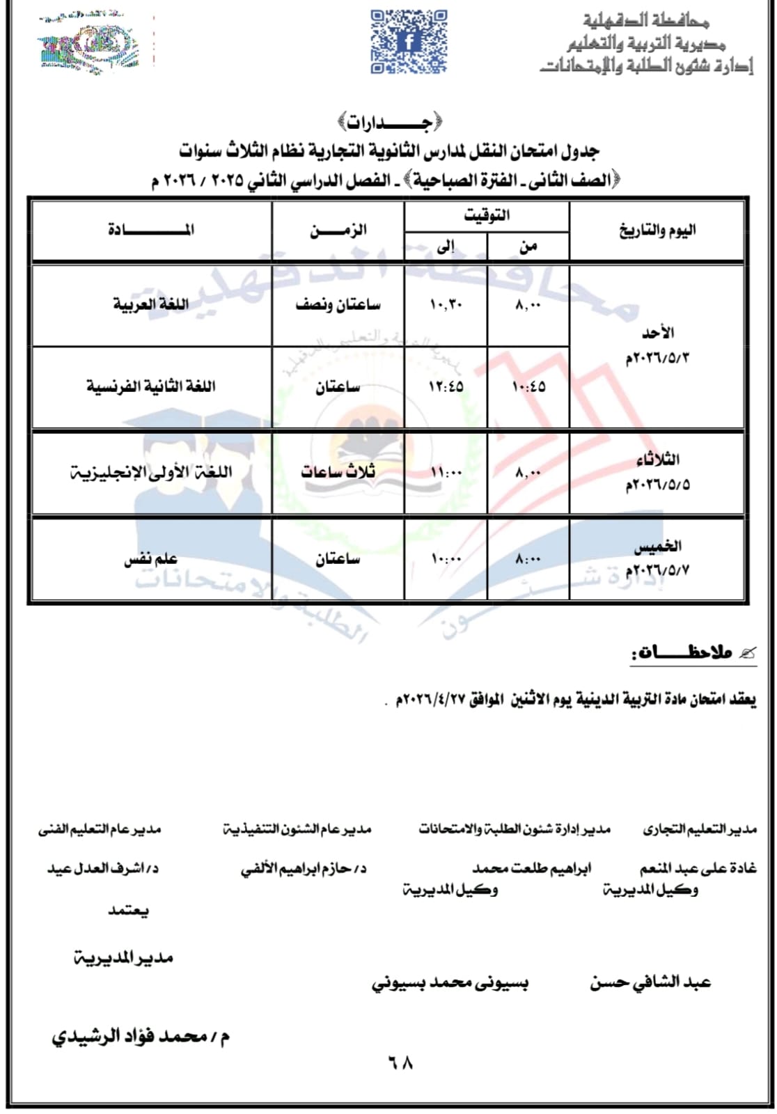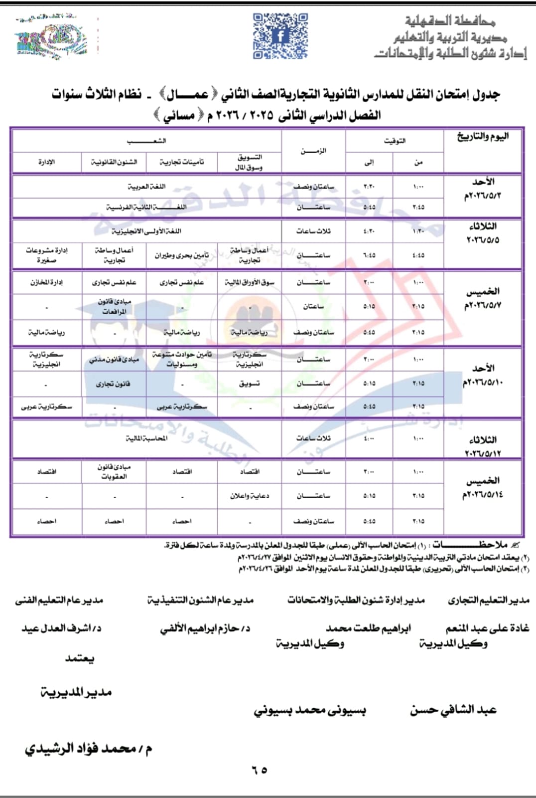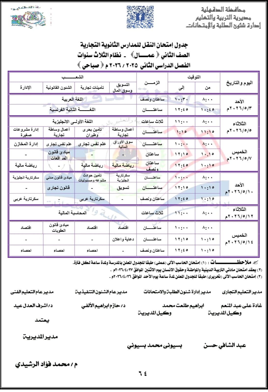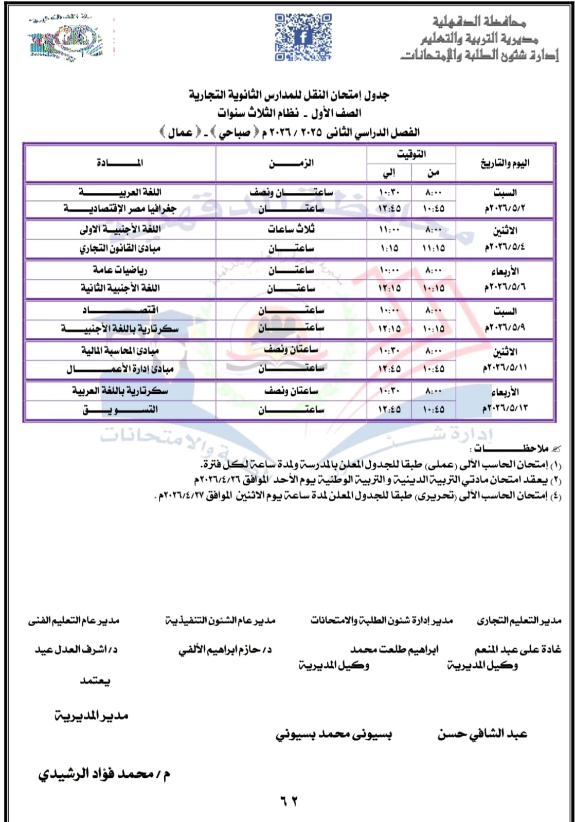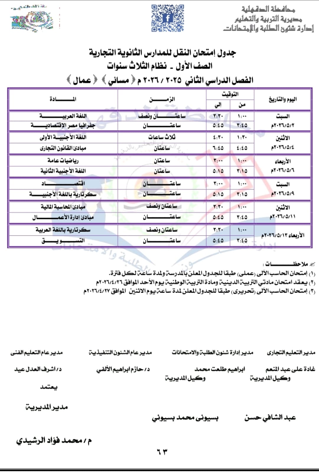بالصور جدول امتحانات التعليم التجاري 2026.. المواعيد والتفاصيل الكاملة