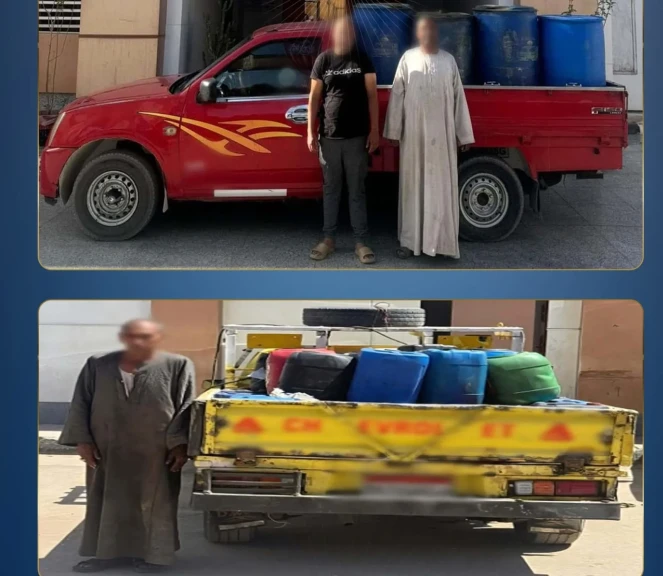 بالصور .. أجهزة الأمن تضبط ”  5 أشخاص بنطاق محافظتى  أسوان والأقصر لقيامهم بتجميع المواد البترولية بقصد إعادة بيعها بالسوق السوداء