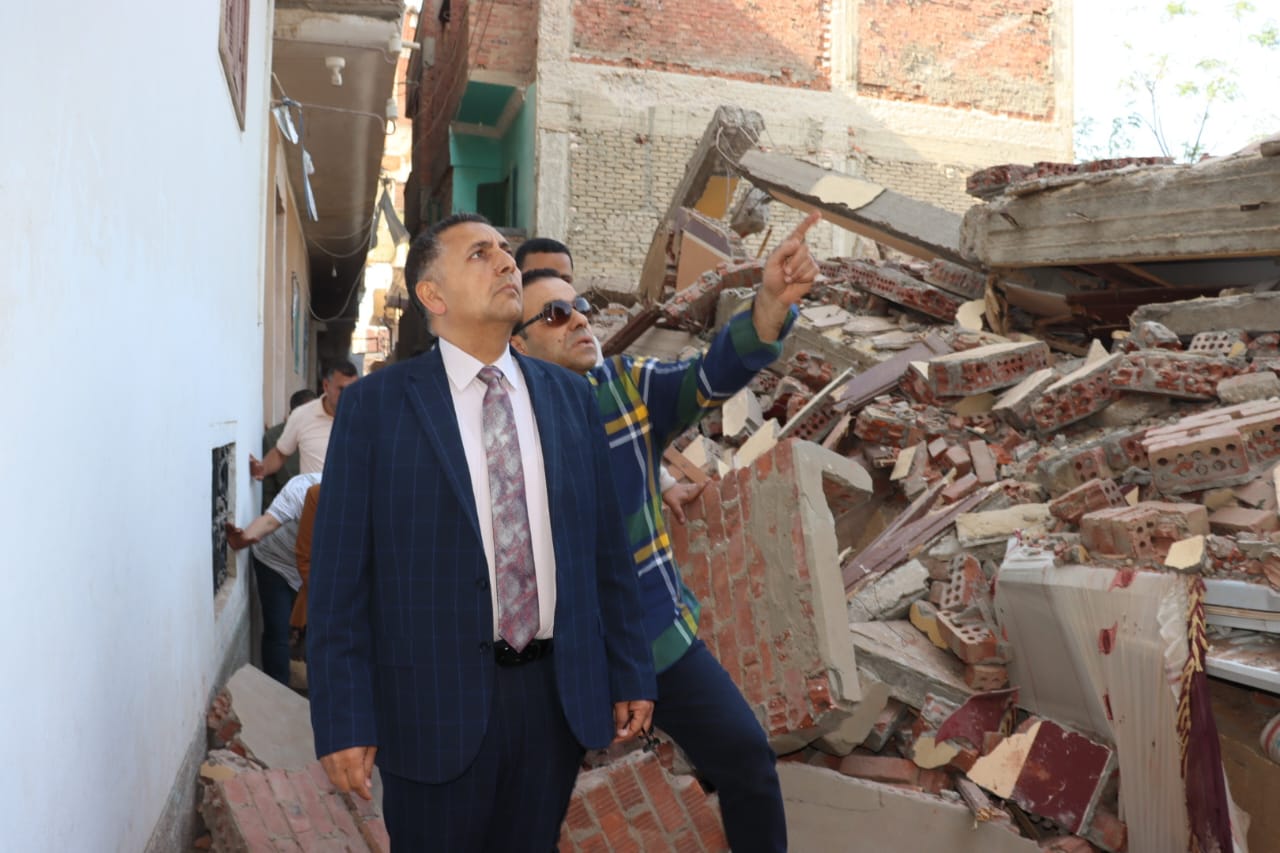 محافظ القليوبية يتفقد موقع انهيار منزل بقرية كفر الحمام ببنها ويوجه بتشكيل لجنة هندسية لفحص المباني المجاورة ويوجه بتوفير سكن مؤقت للمتضررين